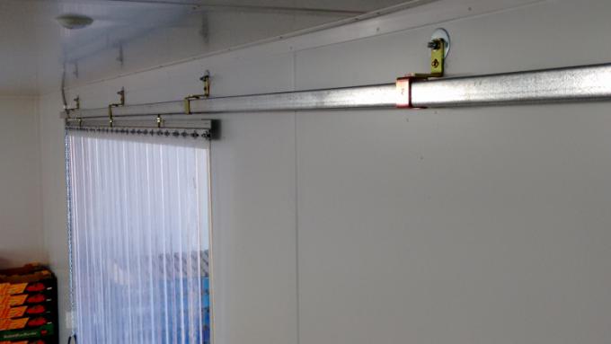 Este cabezal cuenta con 2 flejes de aluminio 1 de 50,2mm y otro de 25.4mm de ancho que aprietan las tiras de pvc por completo a lo largo de la cortina. Se coloca sobre el marco permitiendo cubrir la totalidad de la abertura.